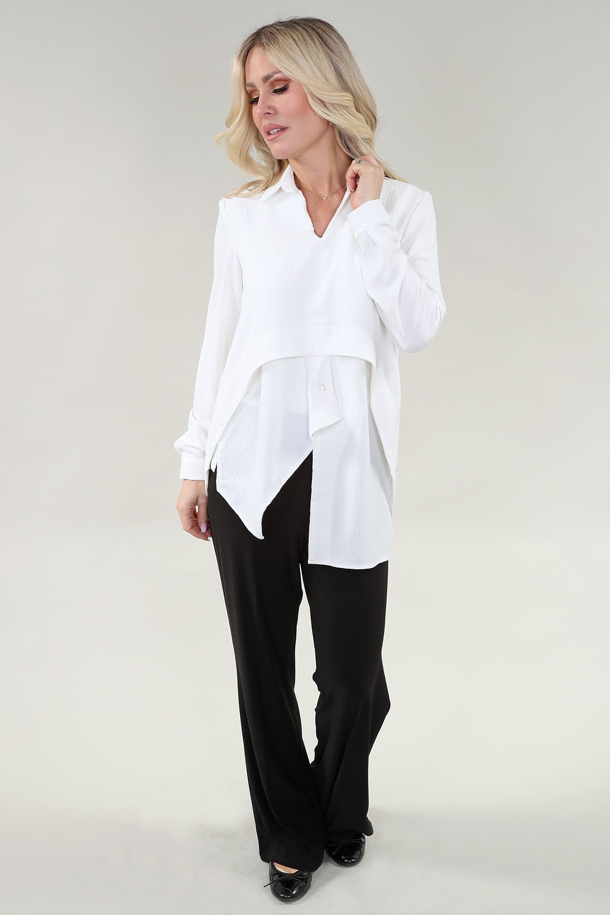 Michael Tyler | Faux Layered Ivory Blouse with Front Cutout