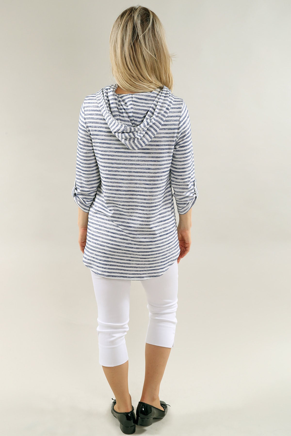 Michael Tyler | Denim Striped Cowl Neck Hooded Tunic