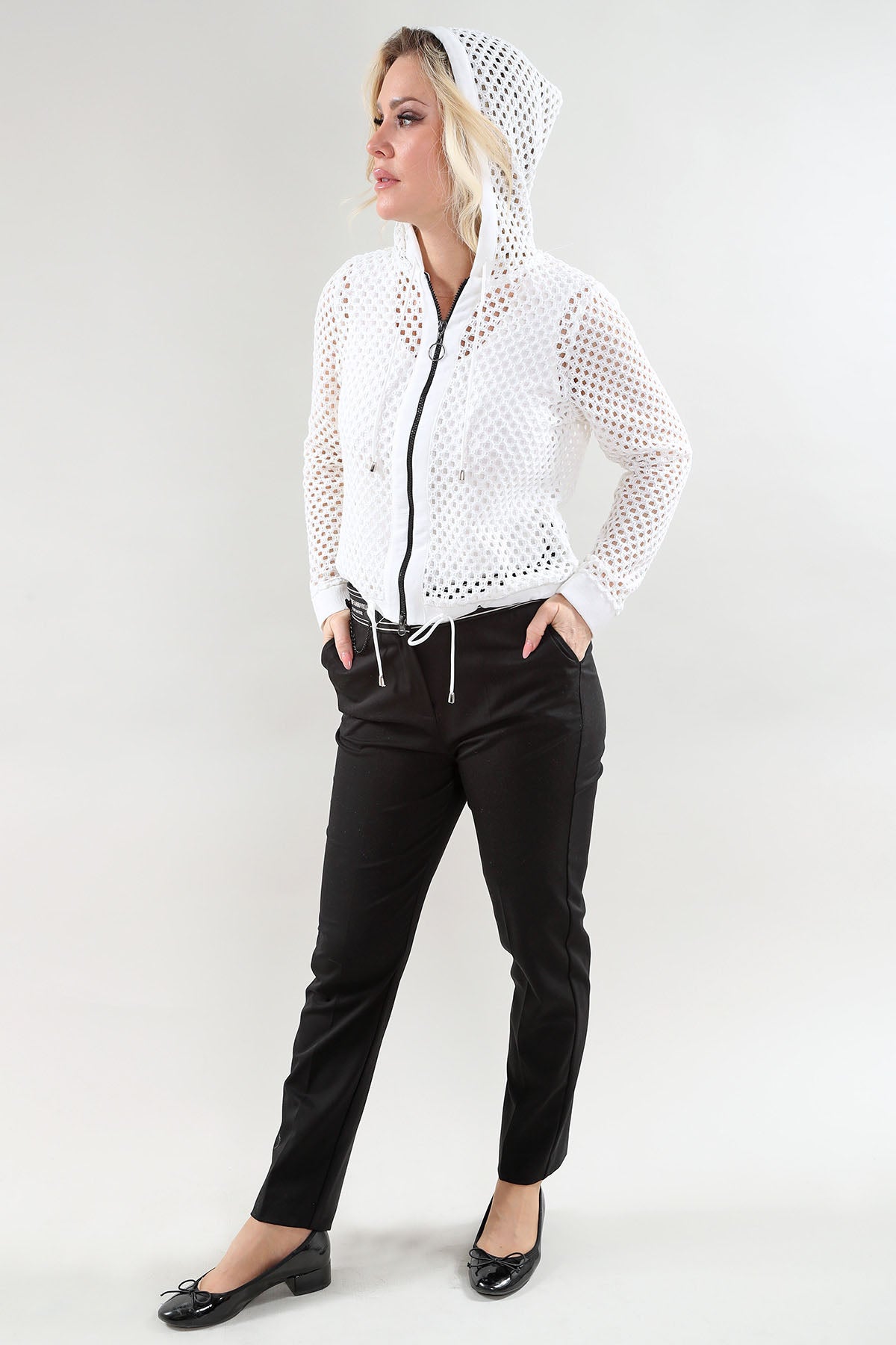 Elevate your layering game with the Michael Tyler Ivory Hooded Mesh Jacket. This lightweight piece features a sleek mesh construction perfect for breathable coverage during transitional seasons. The adjustable drawstring hood provides customizable comfort, while the full-length zipper closure ensures easy on-and-off wear. Long sleeves offer extended coverage without bulk. Versatile and effortlessly stylish, this jacket pairs seamlessly with casual basics or elevated pieces for a polished, modern look.