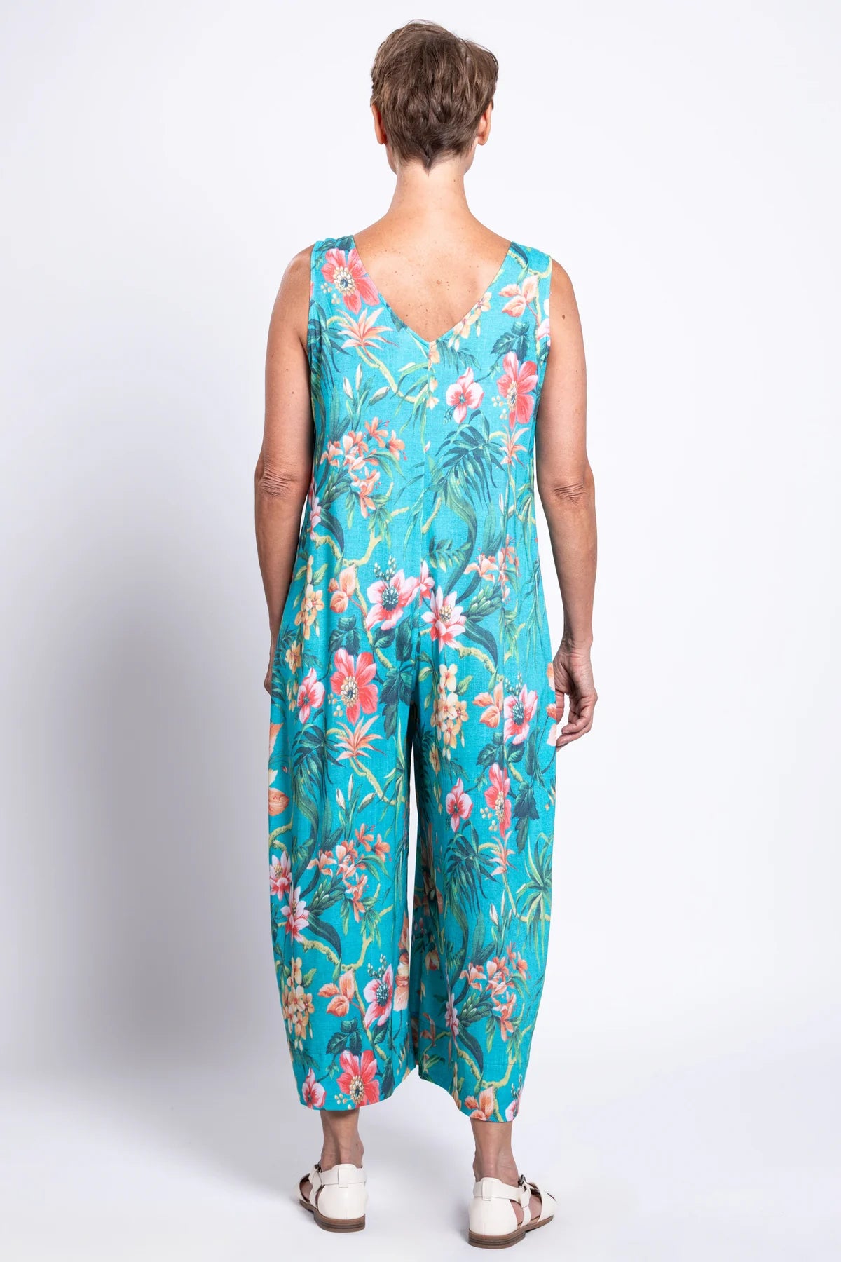 Fernanda Jumpsuit, Teal Fiji, Linen Bamboo