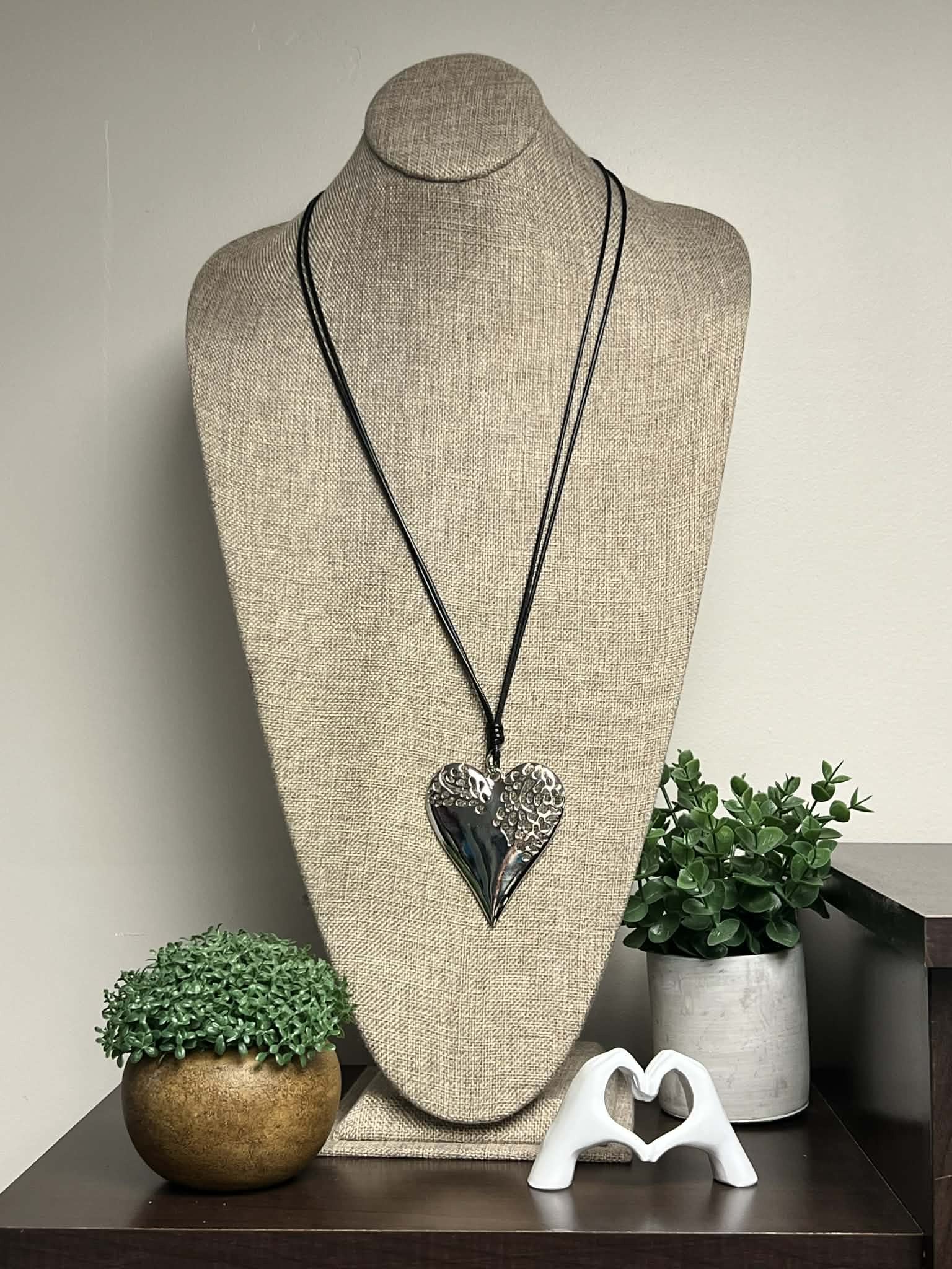 Black Adjustable Leather String with Silver Heart Pendant