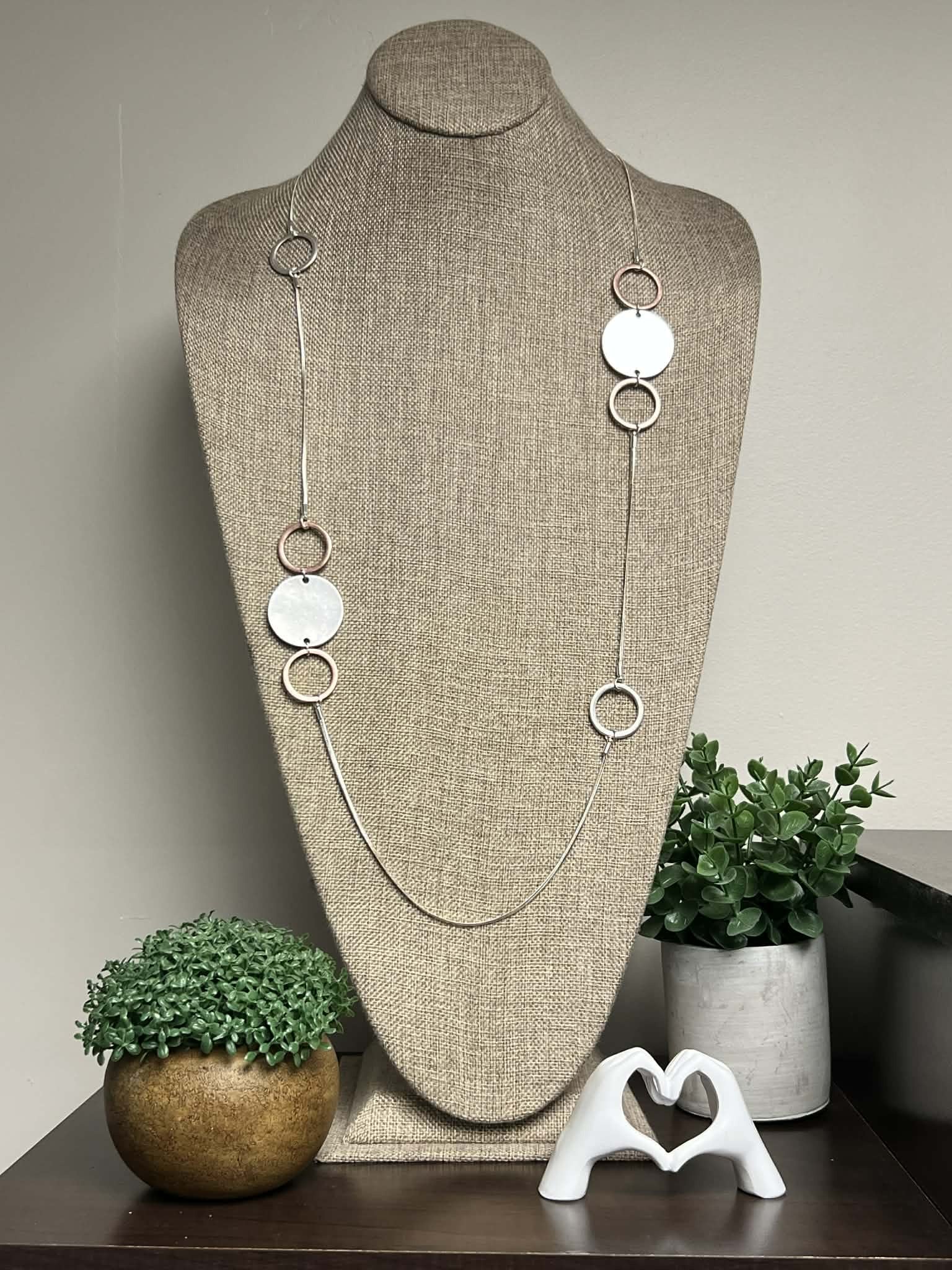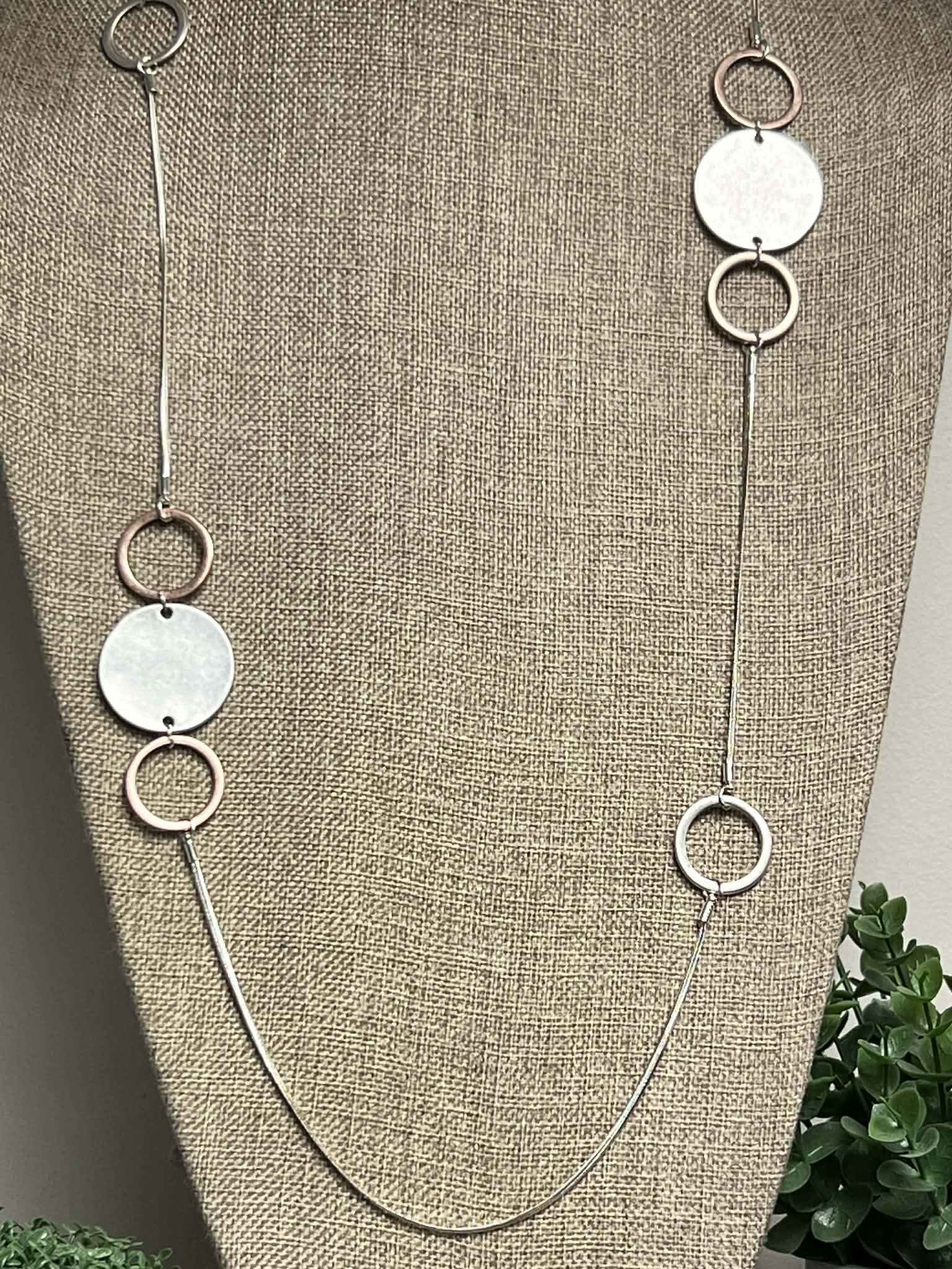 Adjustable Silver, Rose Gold Necklace with Ring Accents