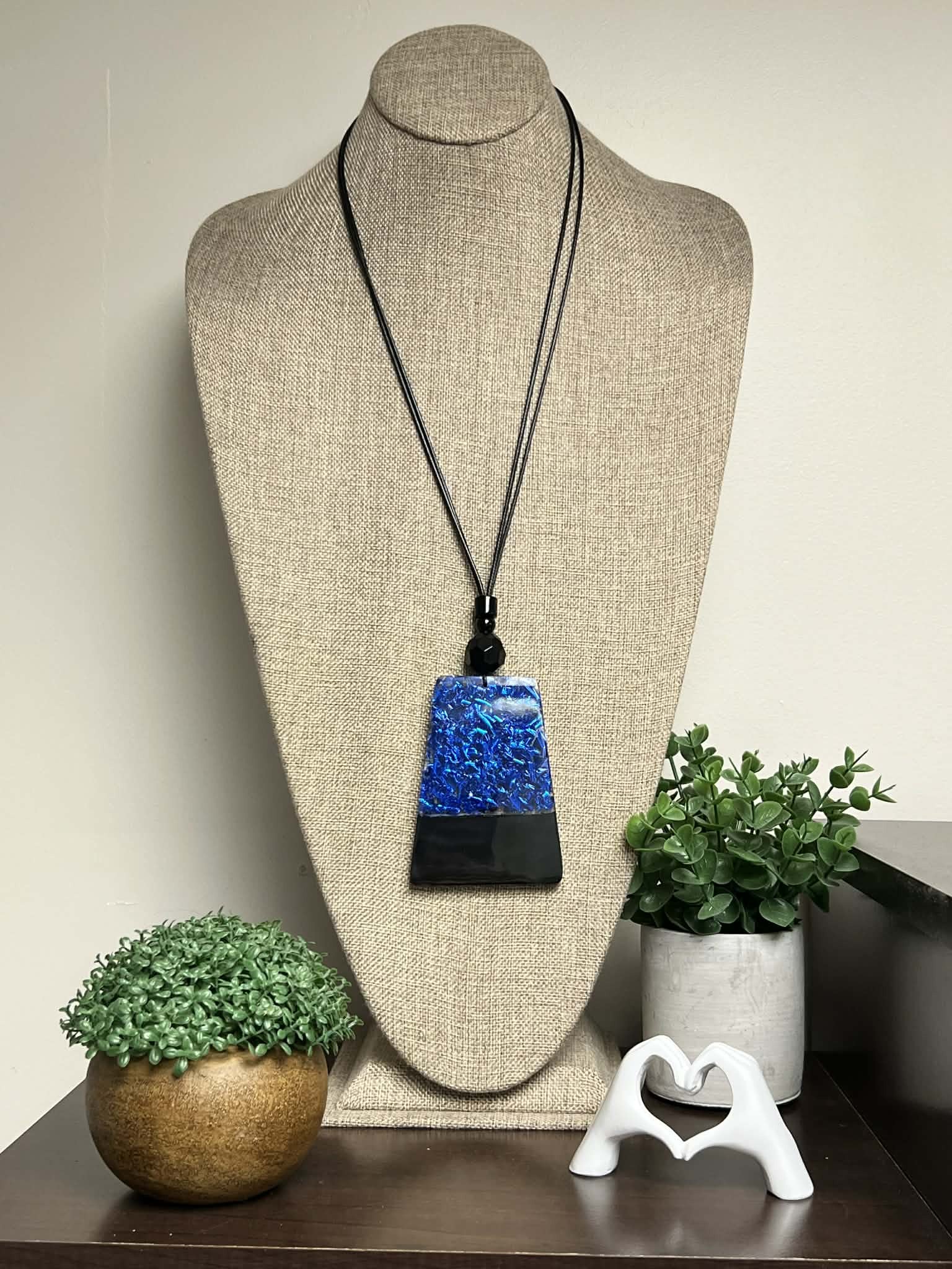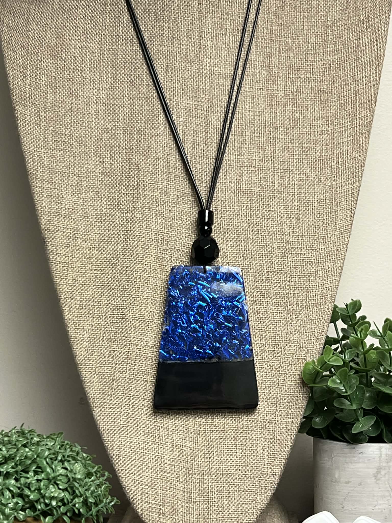Adjustable String Necklace with Blue Foil Resin Pendant