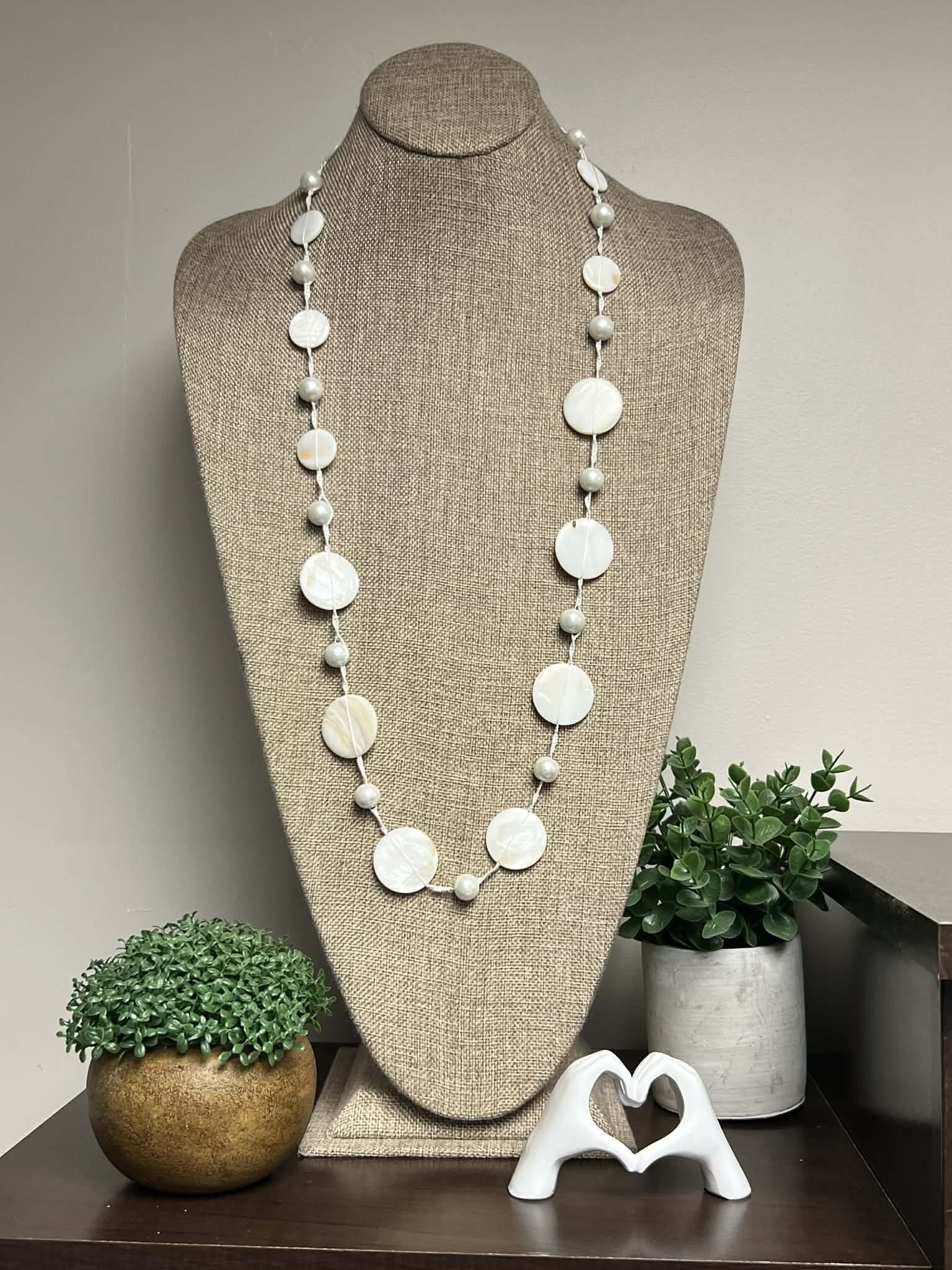 Cream Resin Beaded Necklace