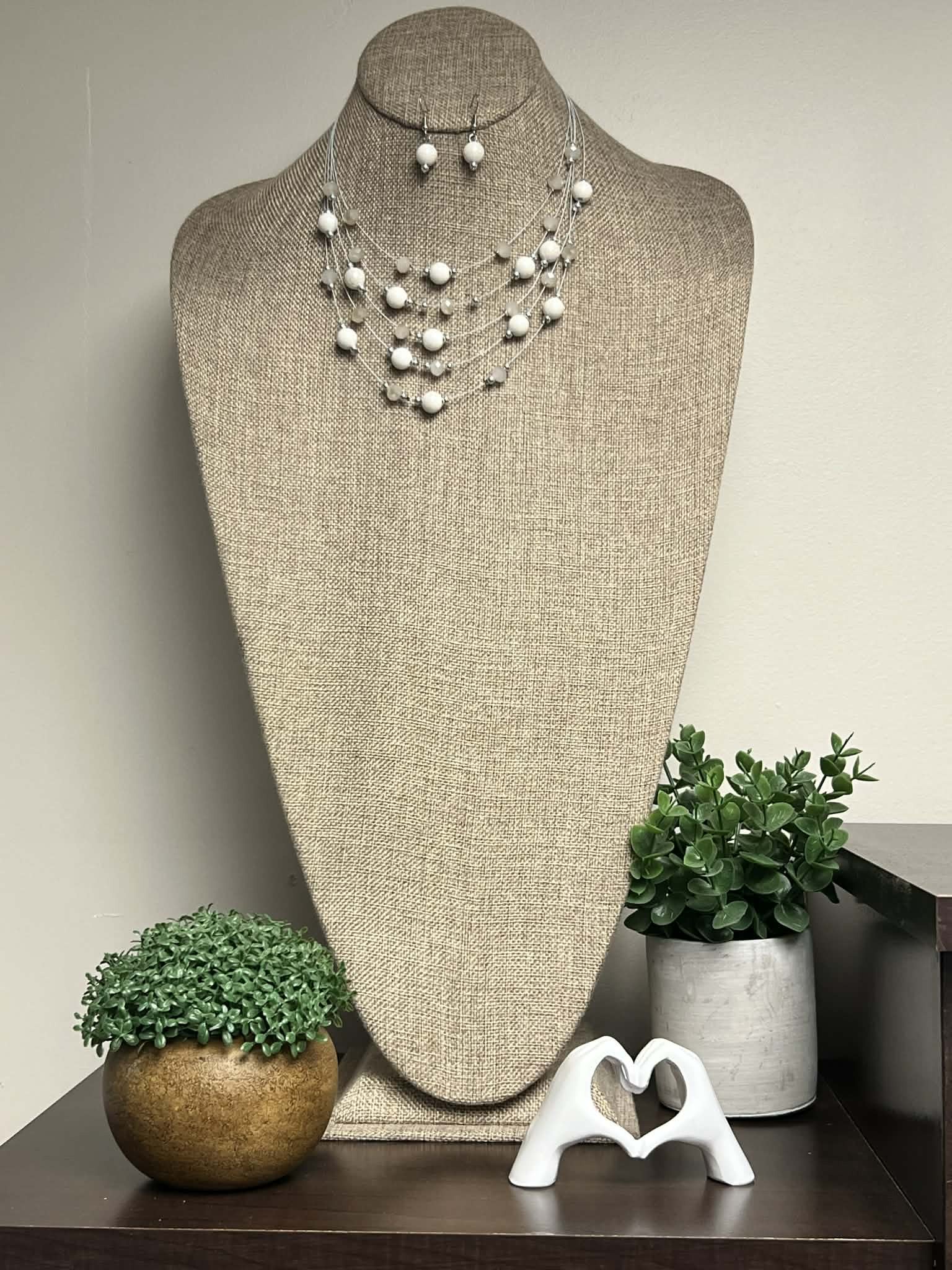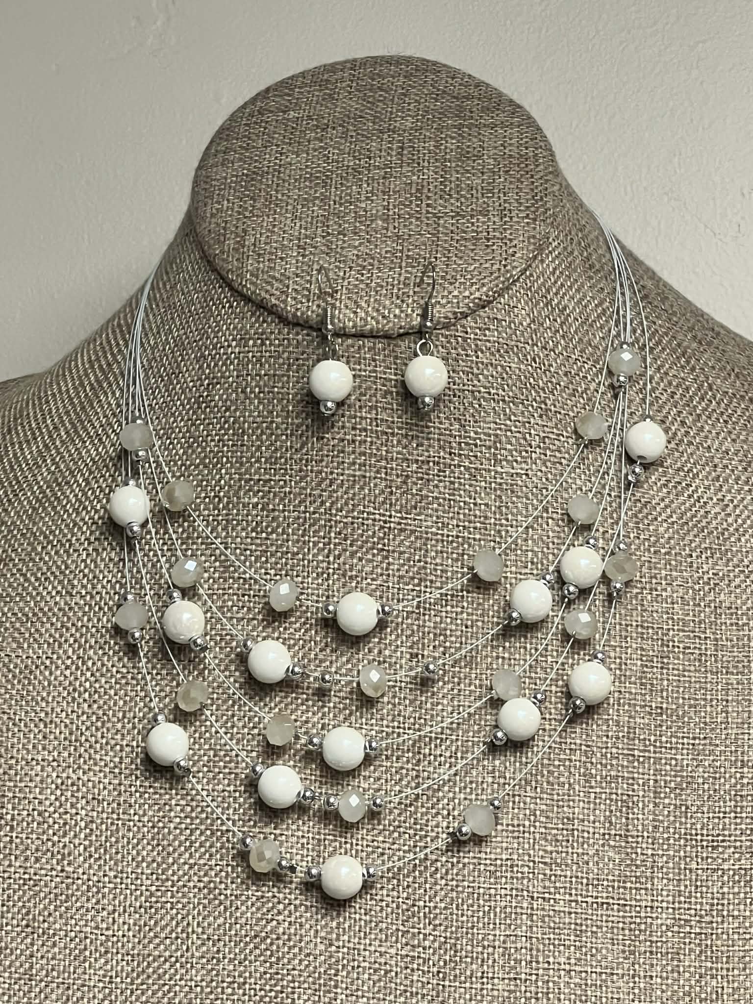 Silver Necklace Set, with Ivory Resin Beads