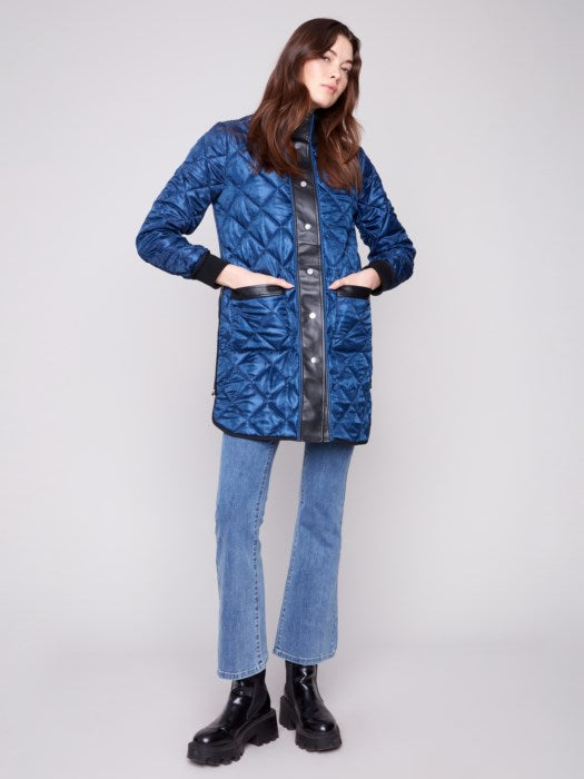 Charlie B | Reversible Long Quilted Puffer Jacket, Marine Navy