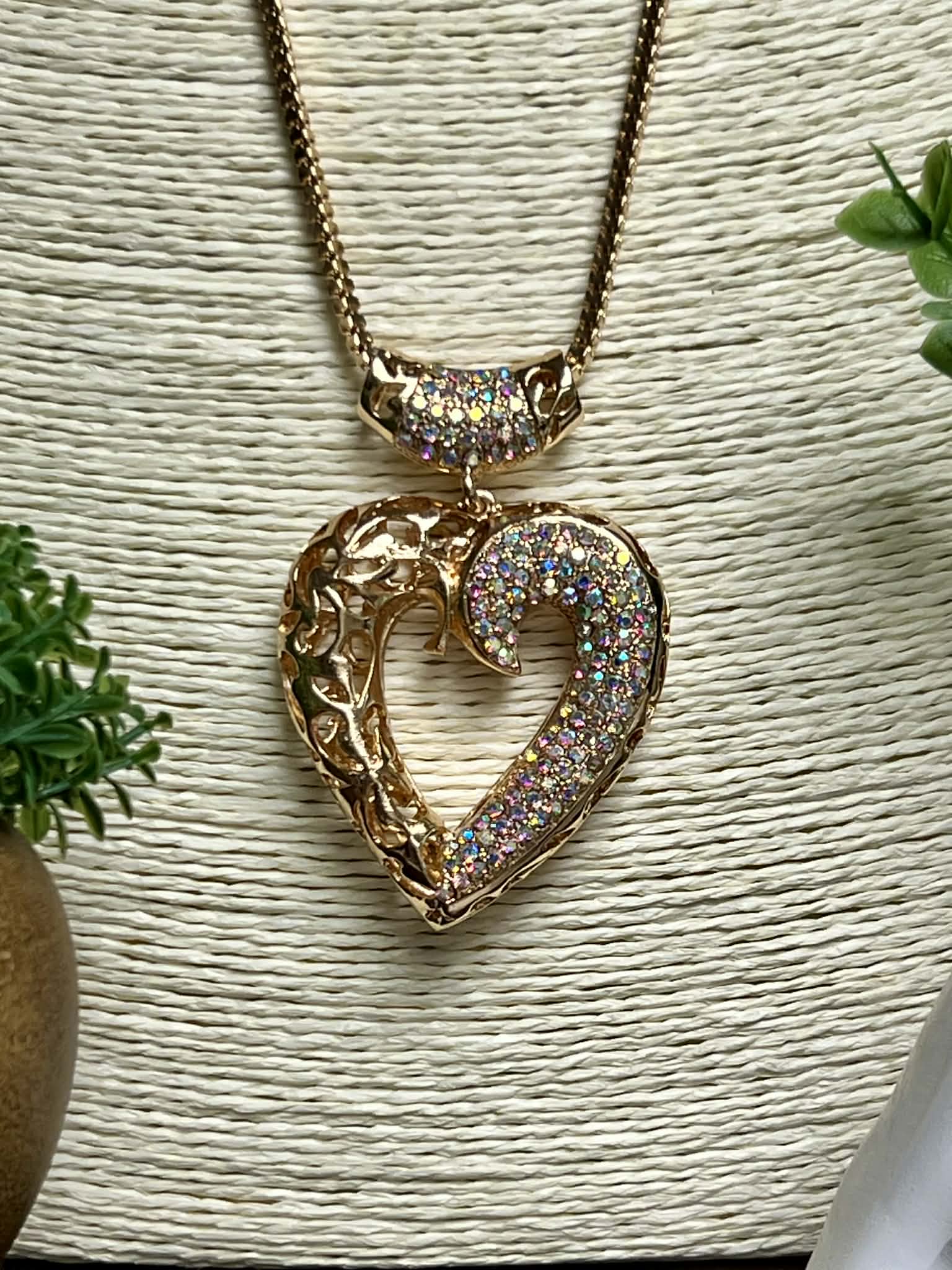 Fall head over heels for this stunning gold 3D heart necklace featuring dazzling rhinestone accents. The dimensional heart design pops with depth and dimension, while the sparkling stones add extra glamour and shine. Perfect for expressing your romantic side or simply celebrating love in all its forms, this eye-catching piece brings heart and sparkle to your everyday style!