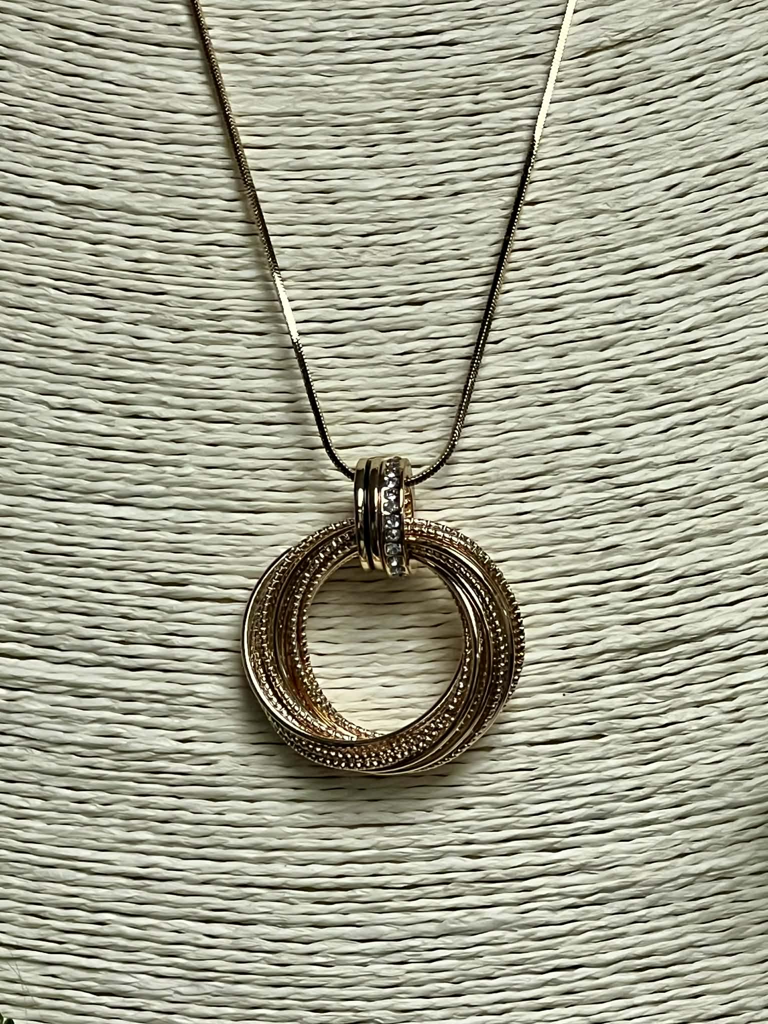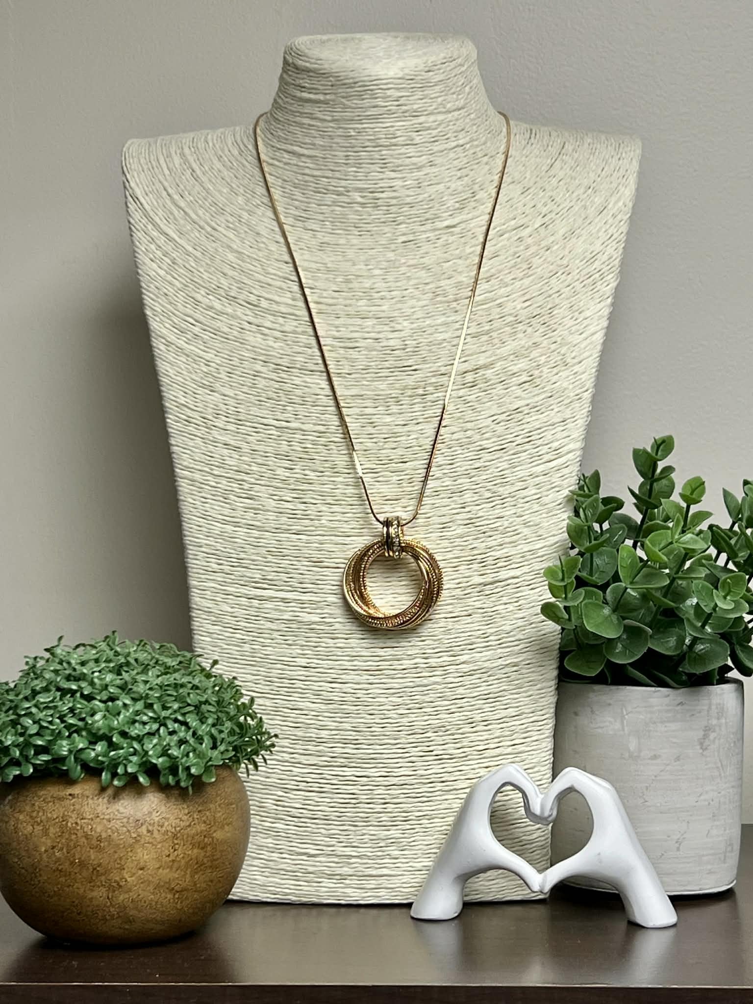 Twist and shout with this eye-catching gold multi-twisted ring necklace! The interlocking rings create a dynamic, modern design that's both sophisticated and fun. Perfect for layering or wearing solo, this versatile piece adds texture and visual interest to any outfit. Whether you're going casual or dressing up, this playful accessory brings movement and style to your everyday look!