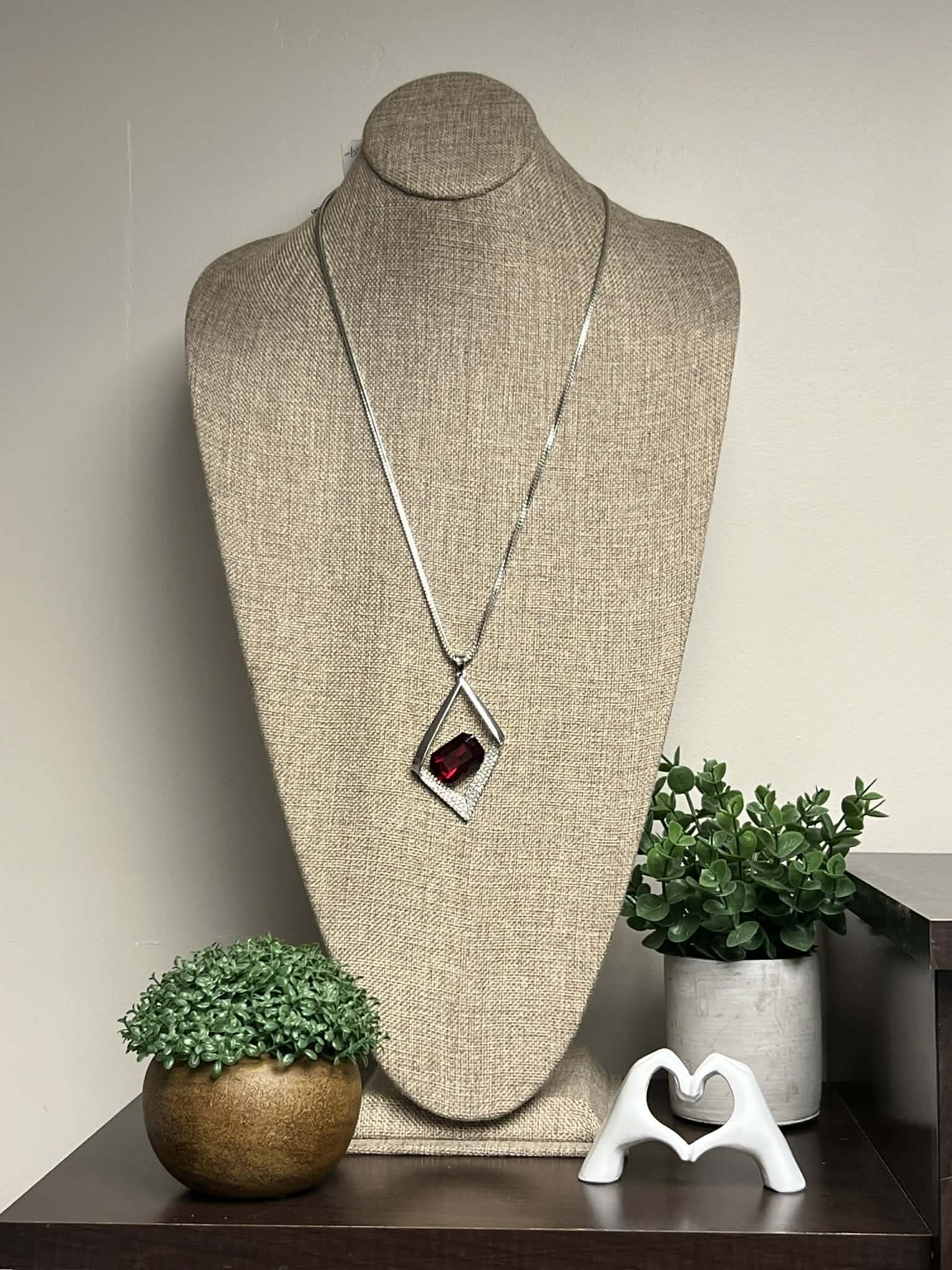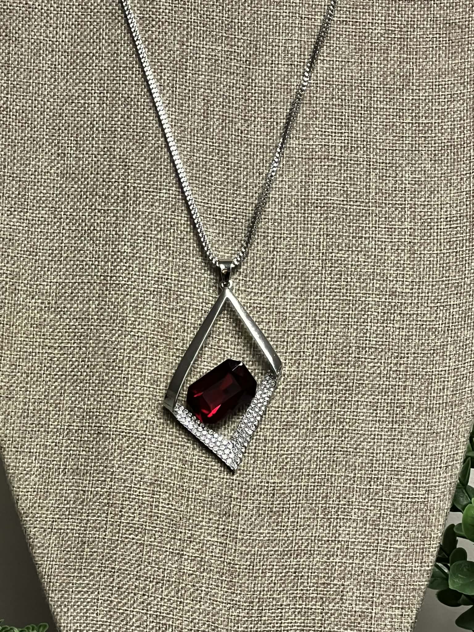 Silver Neckace with Red Diamond Shaped Pendant