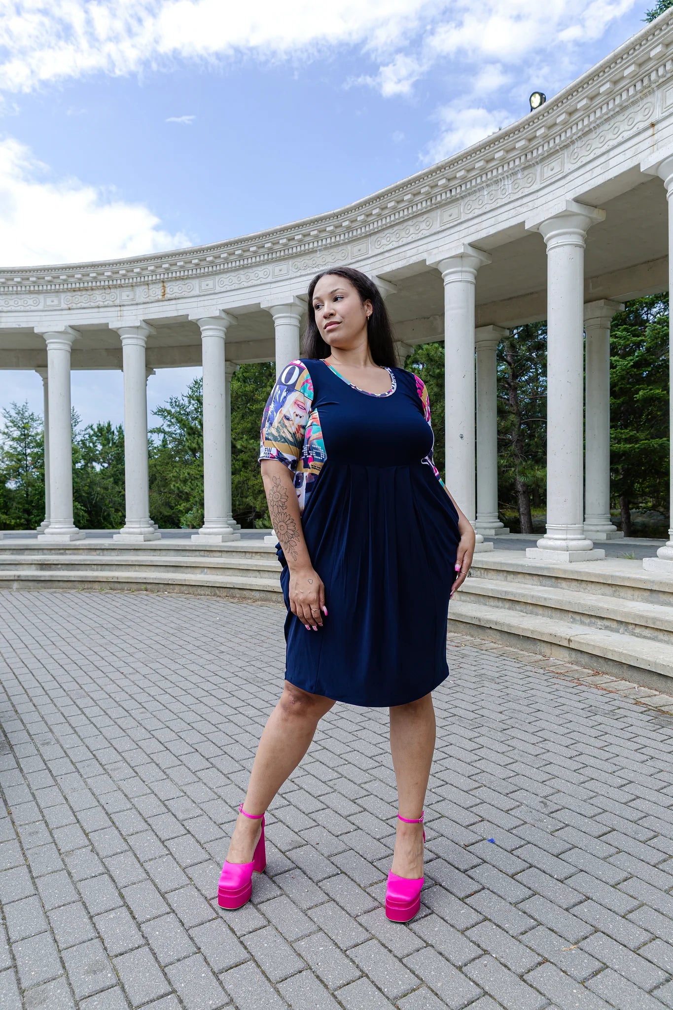 Get ready to flaunt an effortless hourglass silhouette with the Black LABB Fresh Mag Navy Pocketed Dress. Its sensational cut sculpts your shape while cleverly camouflaging with inset side patterns. Practical pockets add a fun twist, perfect for stashing your essentials on the go. This dress combines style and comfort in a playful way that’s sure to turn heads.