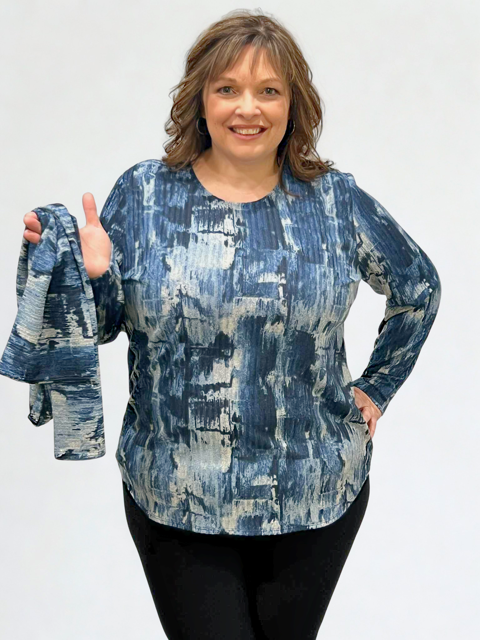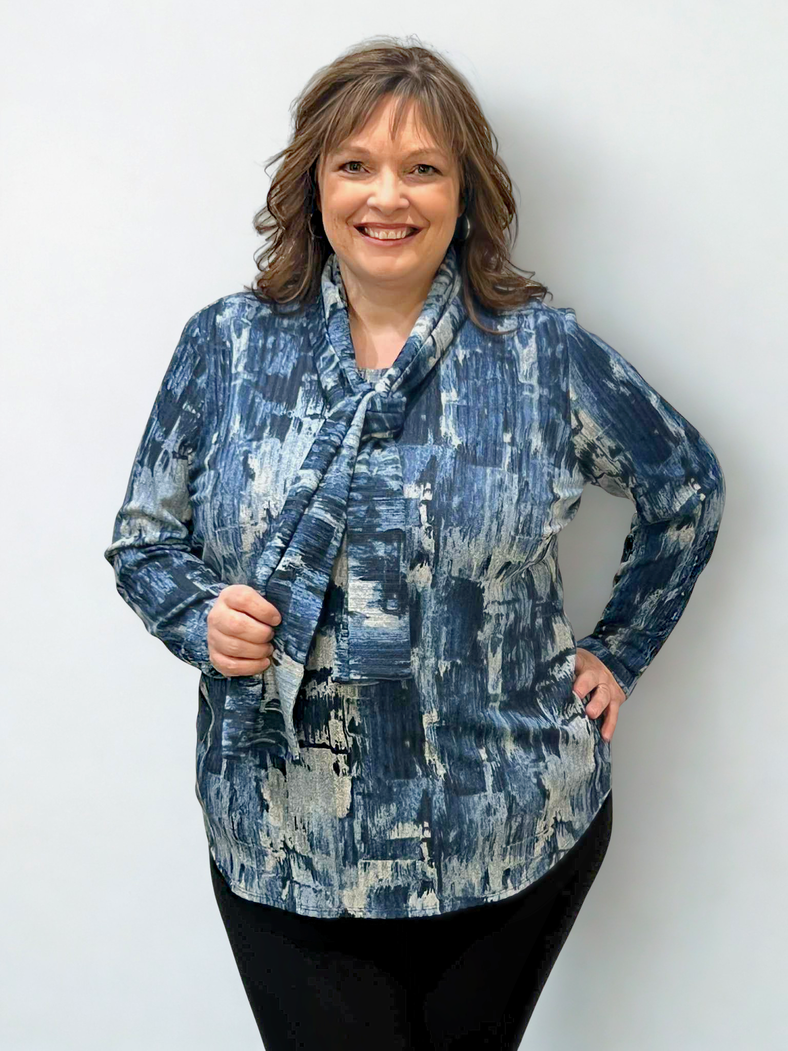 Wrap yourself in style with the Modes Crystal Denim Crew Neck Tunic and matching scarf! Lightweight and comfy, this duo adds a playful twist to your casual look, keeping you cozy while turning heads wherever you go.