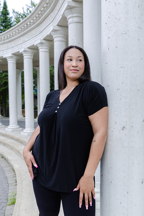 Black LABB Clothing | BL45 Black Draped Short Sleeve Top with Buttons