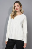 Elevate your basics with the 3/4 Sleeves Textured Top With Side Slits. The soft texture and flattering side slits add subtle dimension to this easy silhouette, making it a great match for trousers, denim, or layered under jackets.
