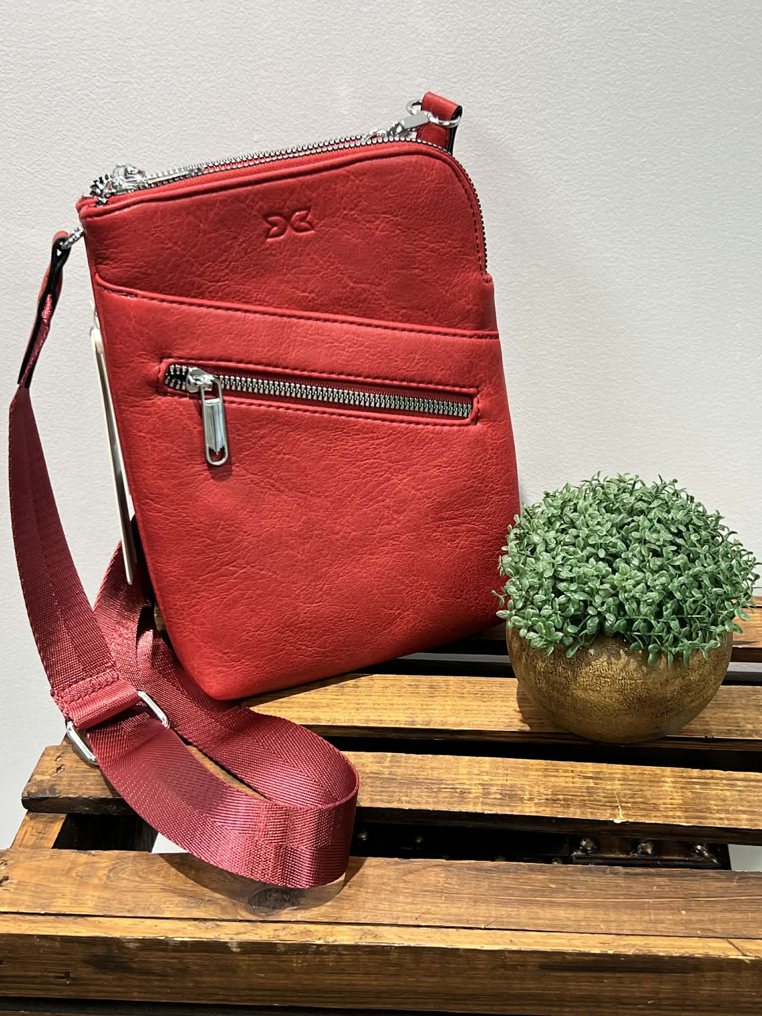 Red Crossbody Purse with 5 Compartments