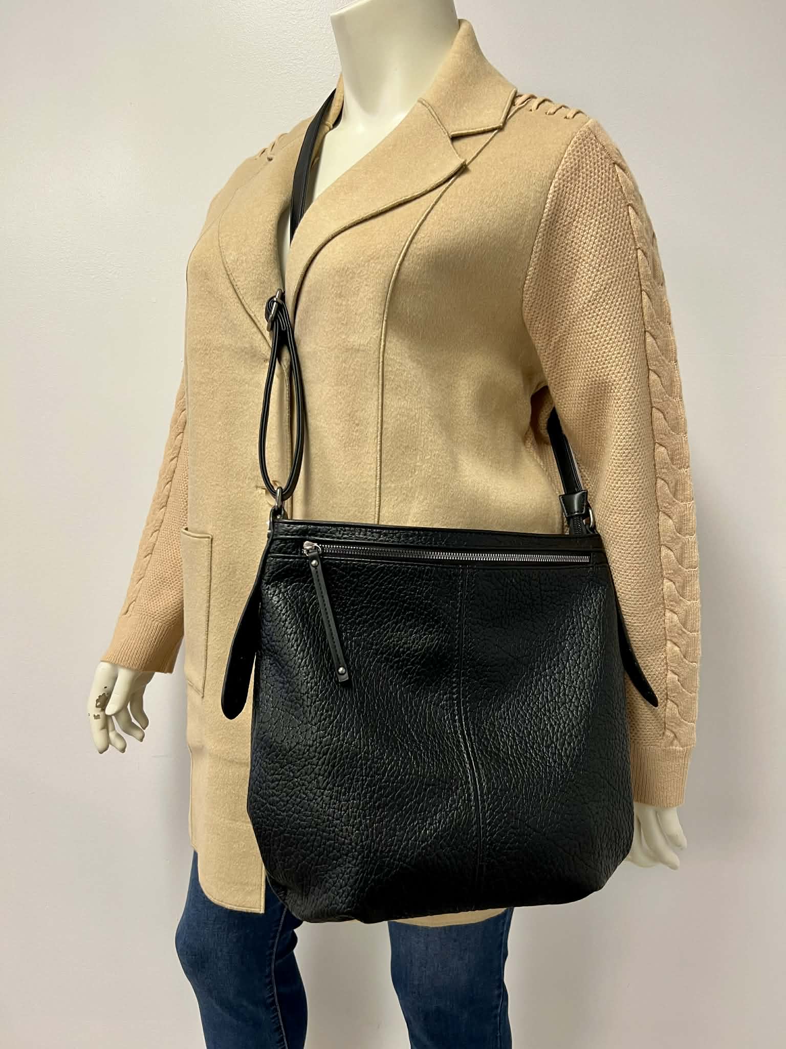 Black Vegan Leather Hobo Style- Cross-body Bag