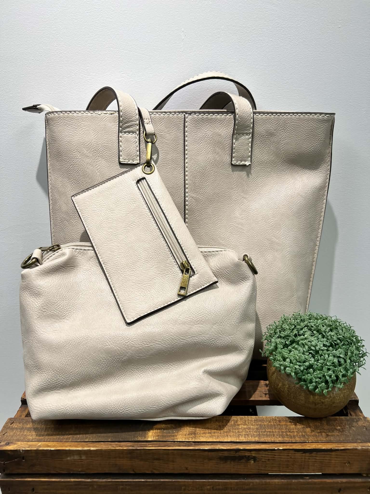 Beige Shoulder Bag 3 Piece Set, wallet, and crossbody