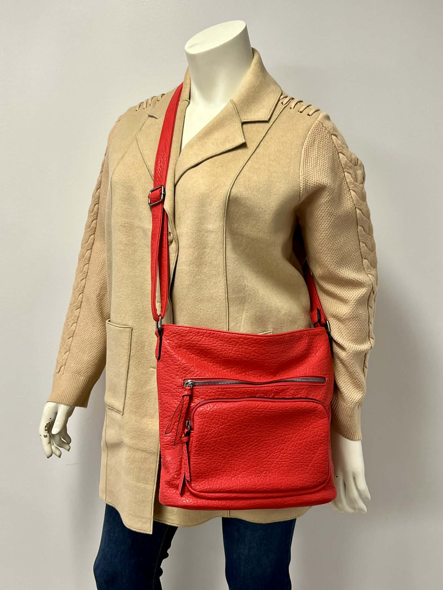 Red Vegan Leather Hobo Shoulder Bag