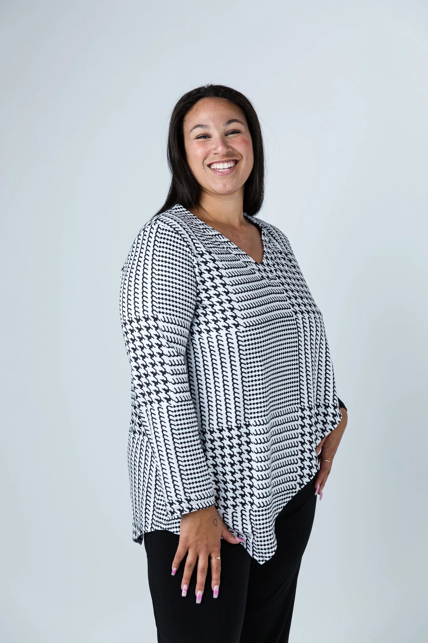 Black LABB Clothing | BL84-204Y Houndstooth Overlay Top