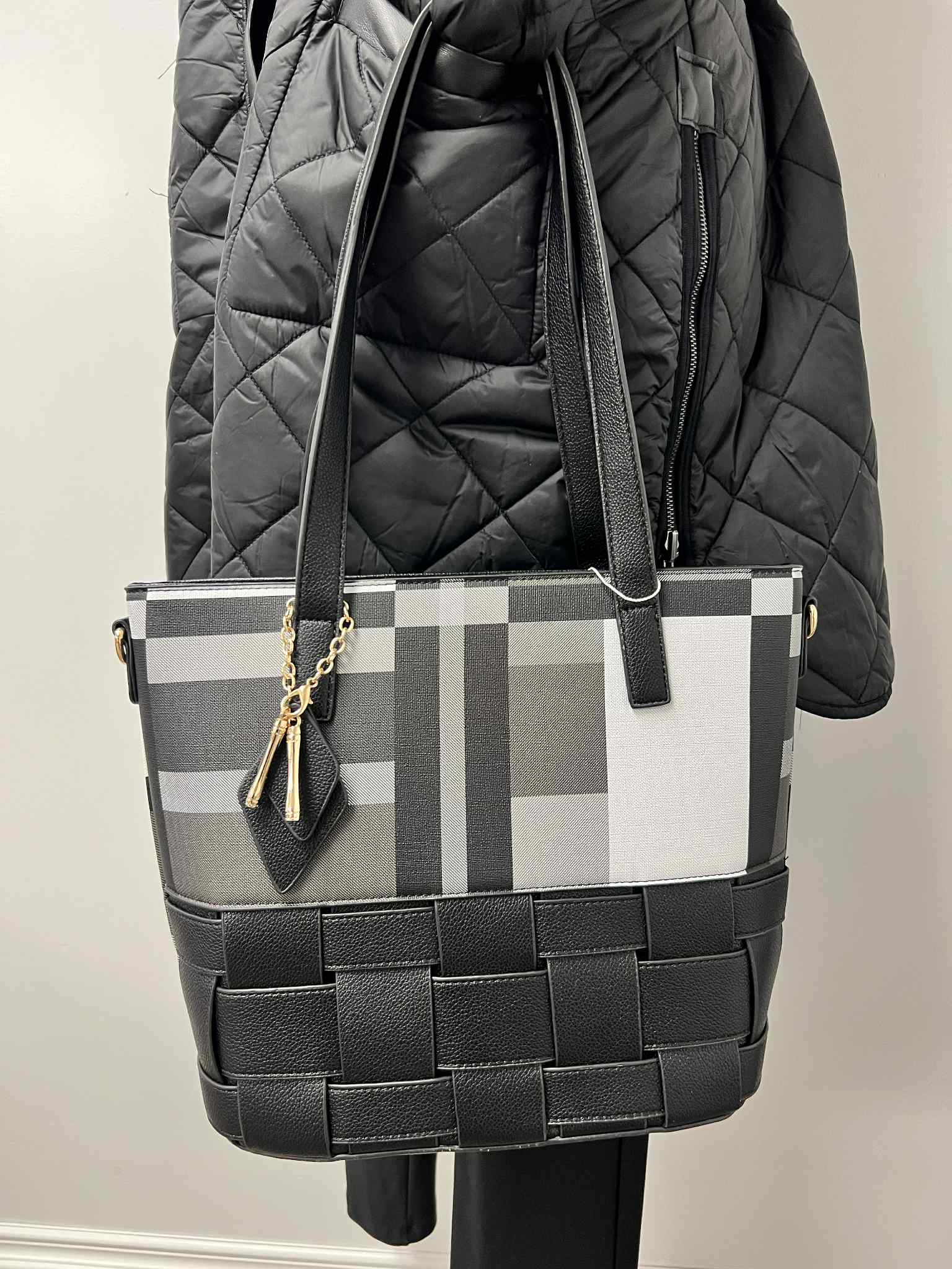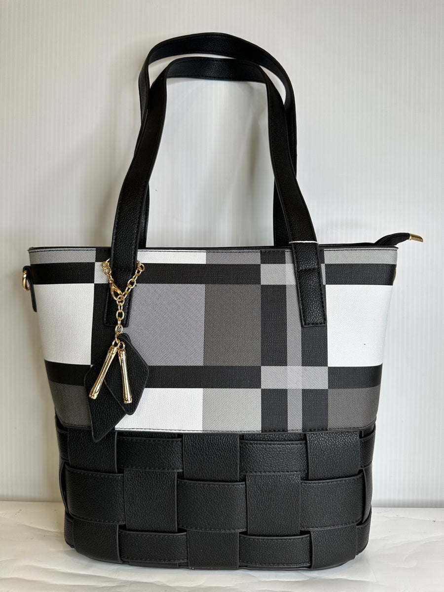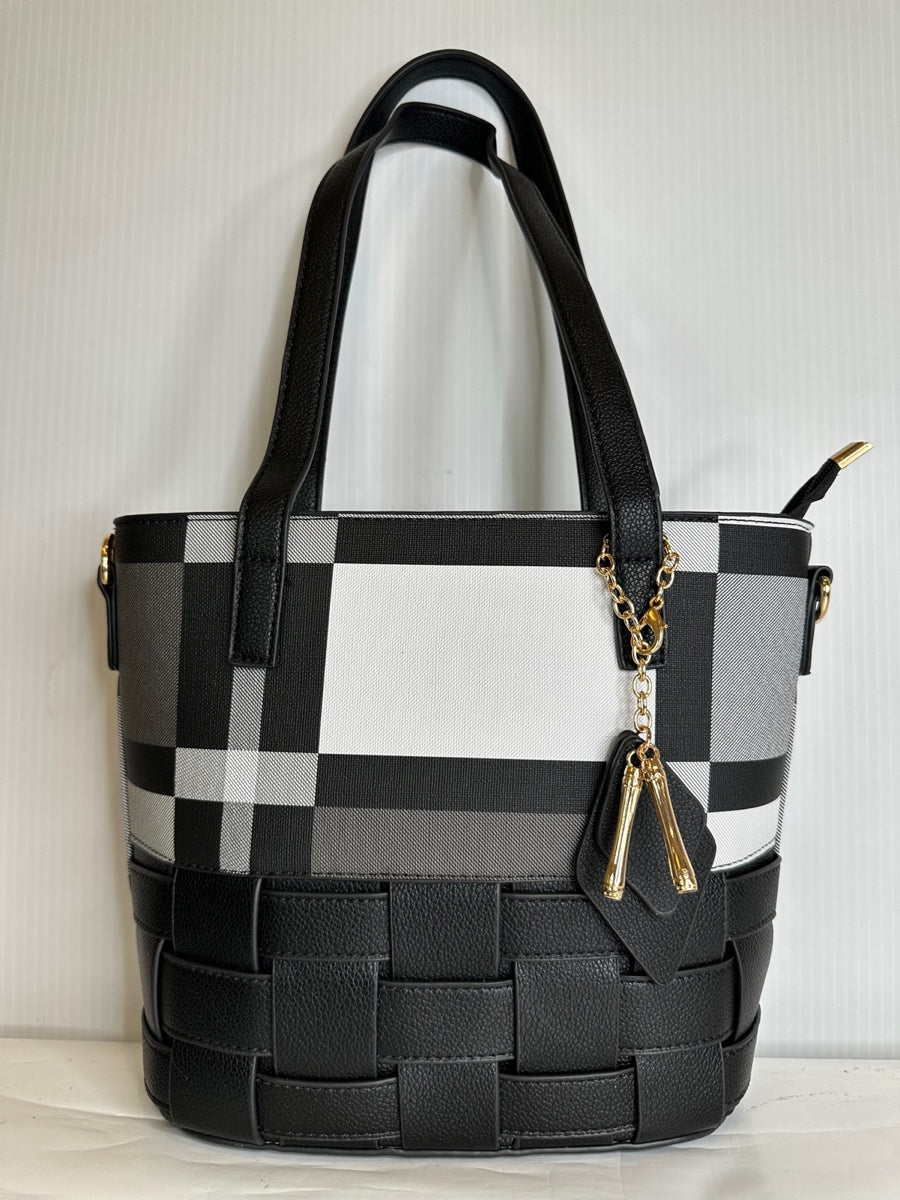 Black Plaid 2 Piece Purse Set with Basketweave Bottom