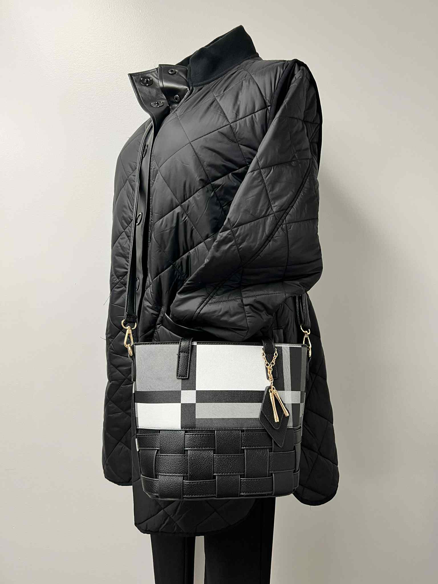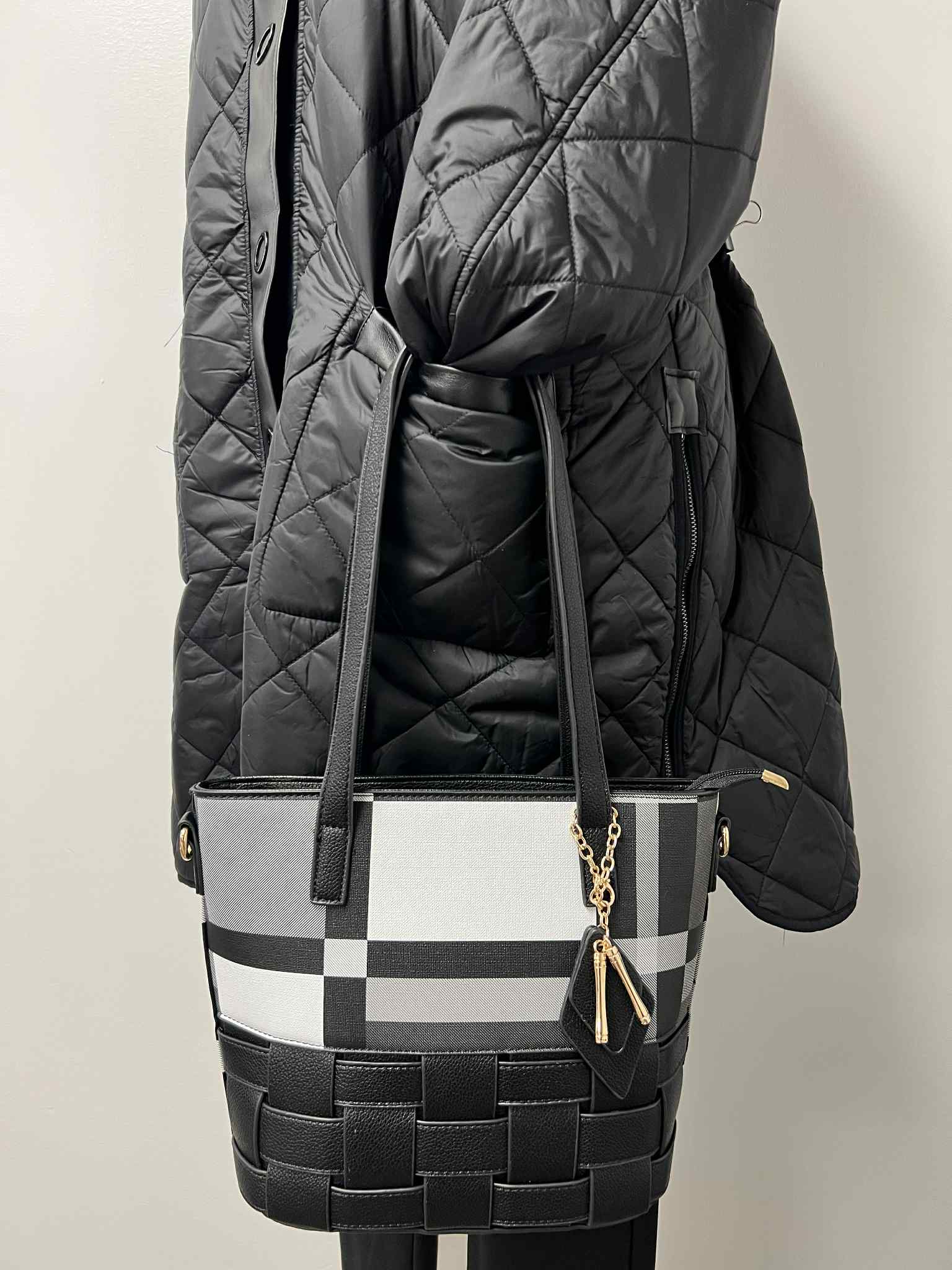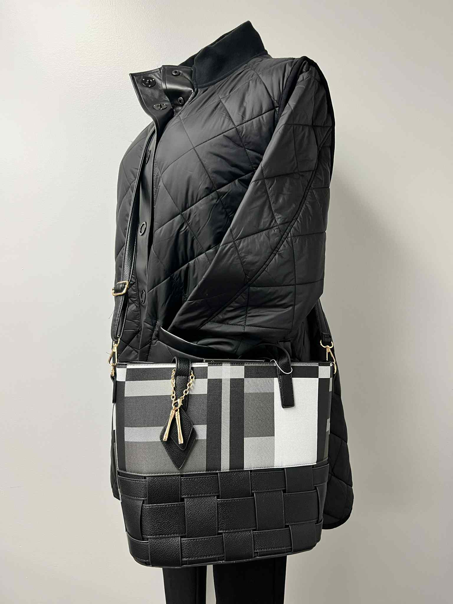 Black Plaid 2 Piece Purse Set with Basketweave Bottom