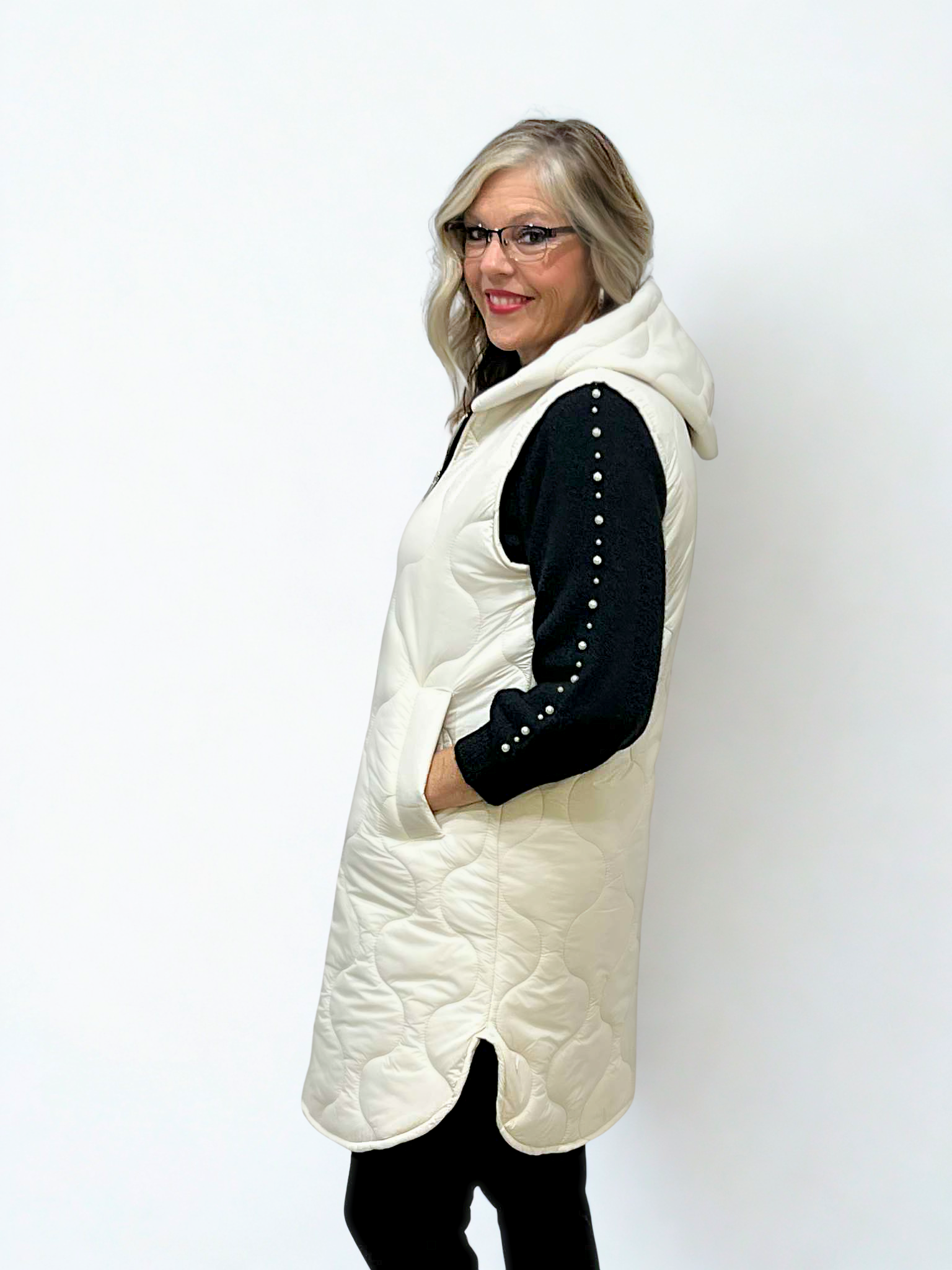 Stay cozy and stylish with this ivory puffer vest featuring a fun animal print inside that adds a wild twist. Complete with a hood, zipper closure, and handy pockets, it’s perfect for adding a playful layer to your outfit while keeping you warm and ready for adventure.