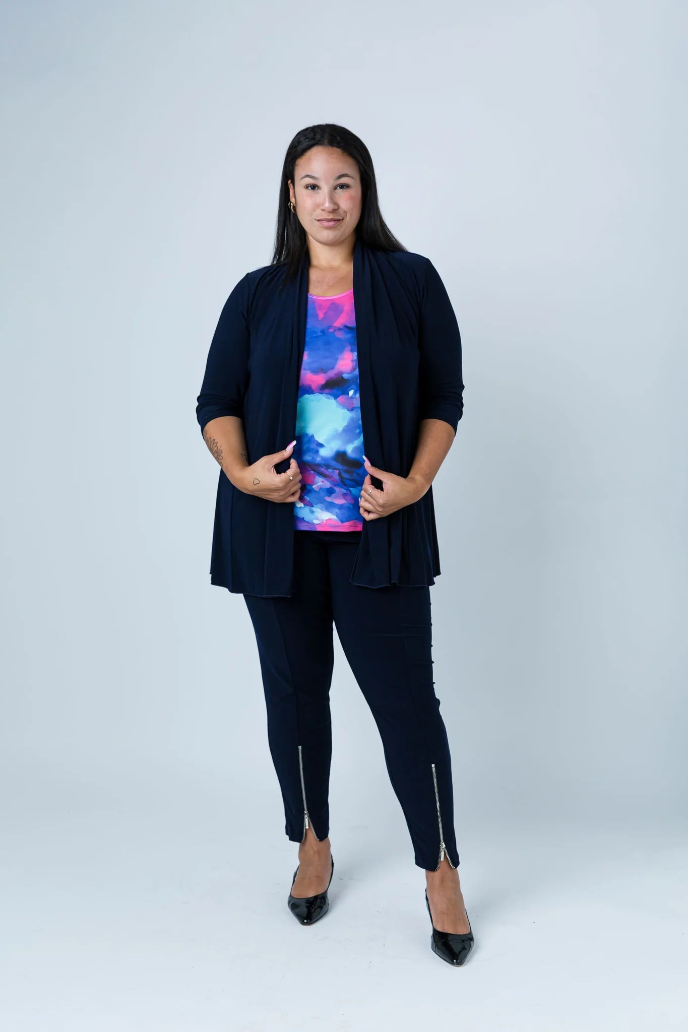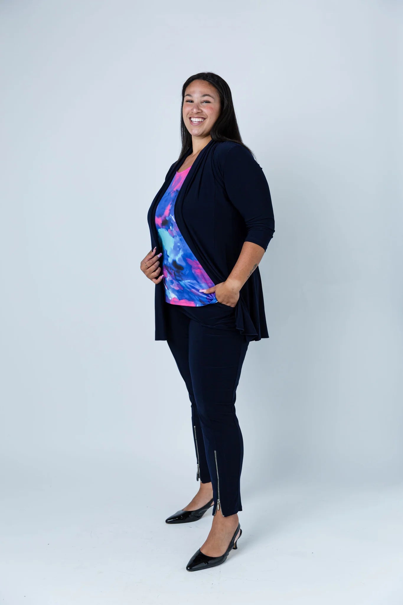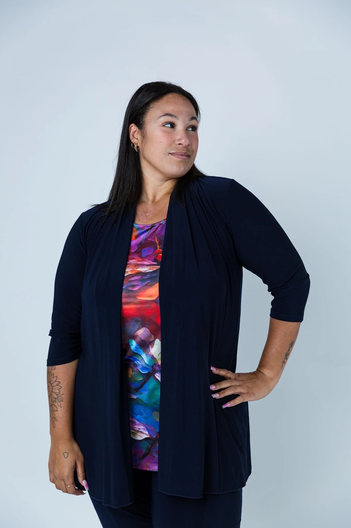 Expertly crafted for fashion-forward individuals, the Black LABB Open Jacket is a must-have addition to any wardrobe. With its vibrant colours and lightweight design, this draped jacket offers a chic and stylish look. The 3/4 sleeve and panel back add to the overall aesthetic, while the 95% polyester and 5% spandex blend ensures a comfortable and true-to-size fit. Elevate your style with this versatile and unique piece.