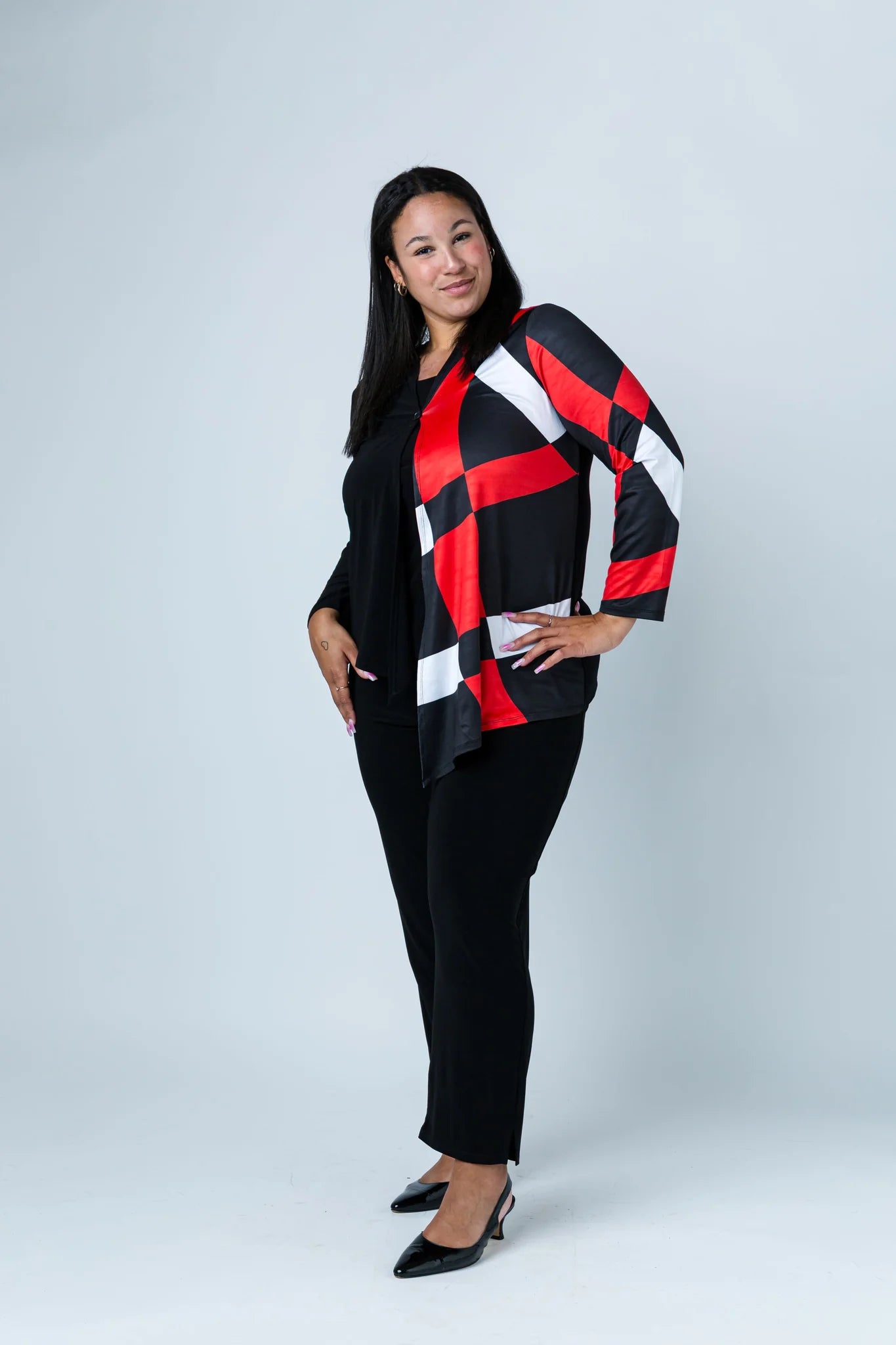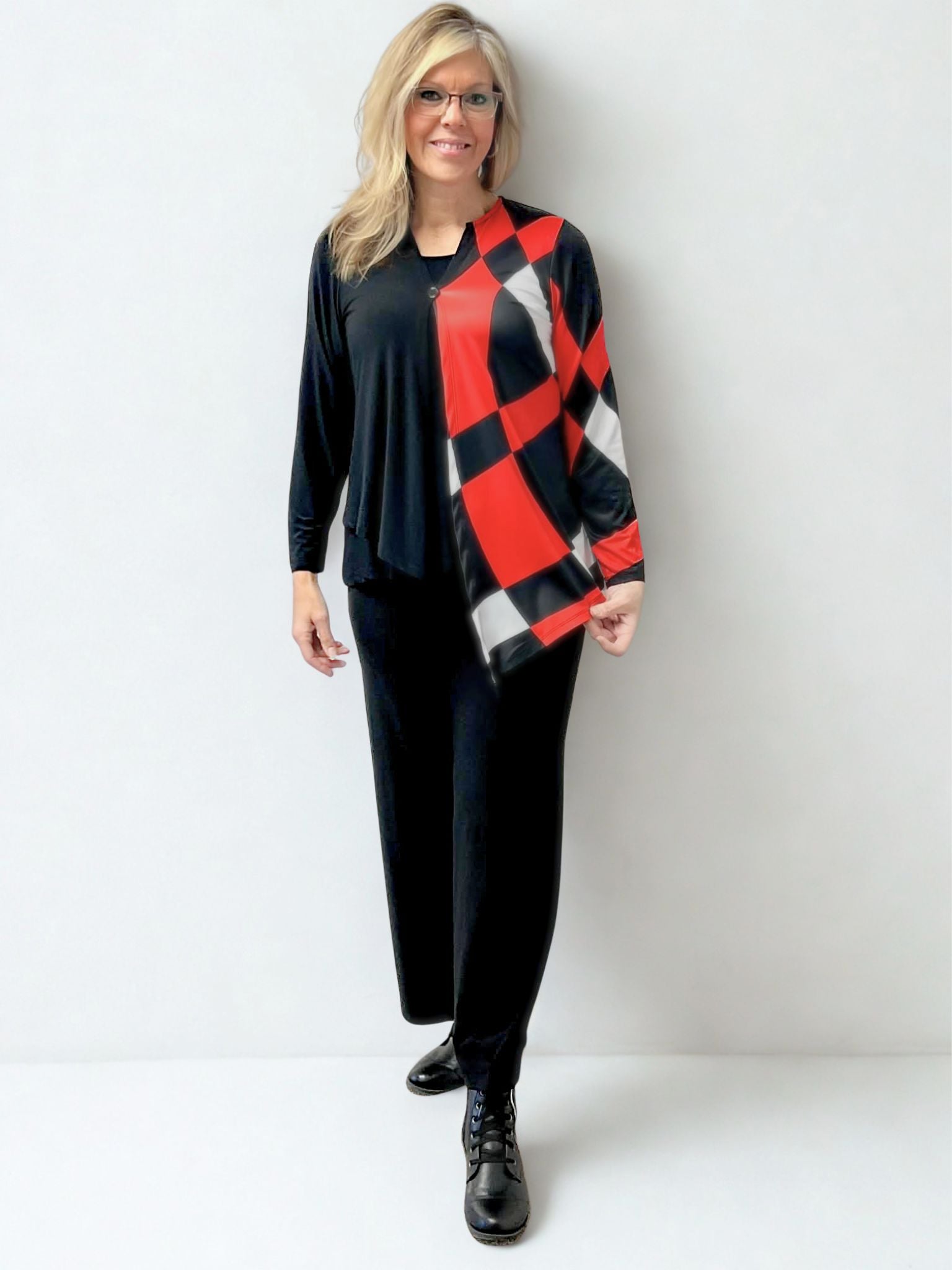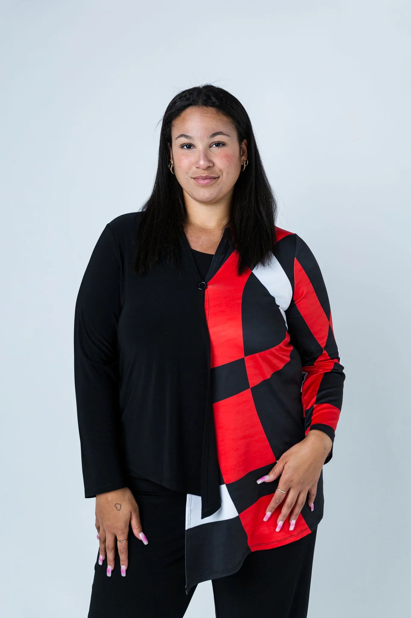 Black LABB Clothing | BL65-202 Red Geo Asymmetric One Button Jacket