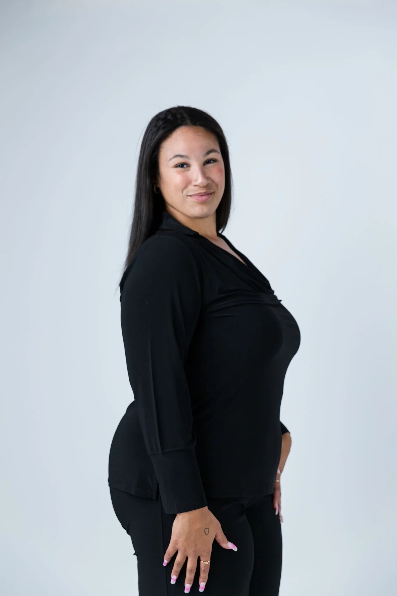 Get ready to look sleek, sexy and oh so flirty in our Black LABB Collar Scoop Neck Top! With a unique scoop neck and playful collar, this top will have you standing out from the crowd. Its sleek sleeve adds a touch of sophistication to any outfit.