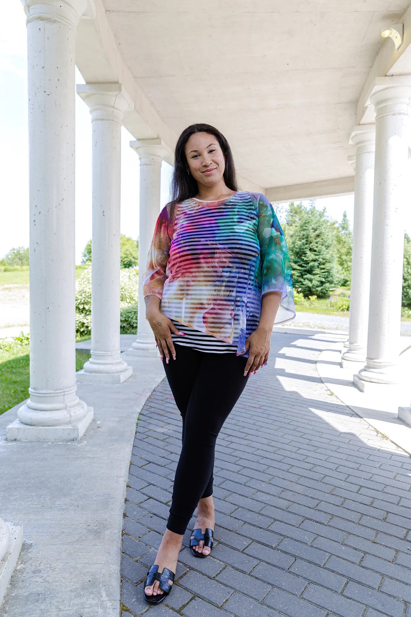 Black LABB Clothing | BL18-226 Coloured Marble Asymmetric Mesh Top