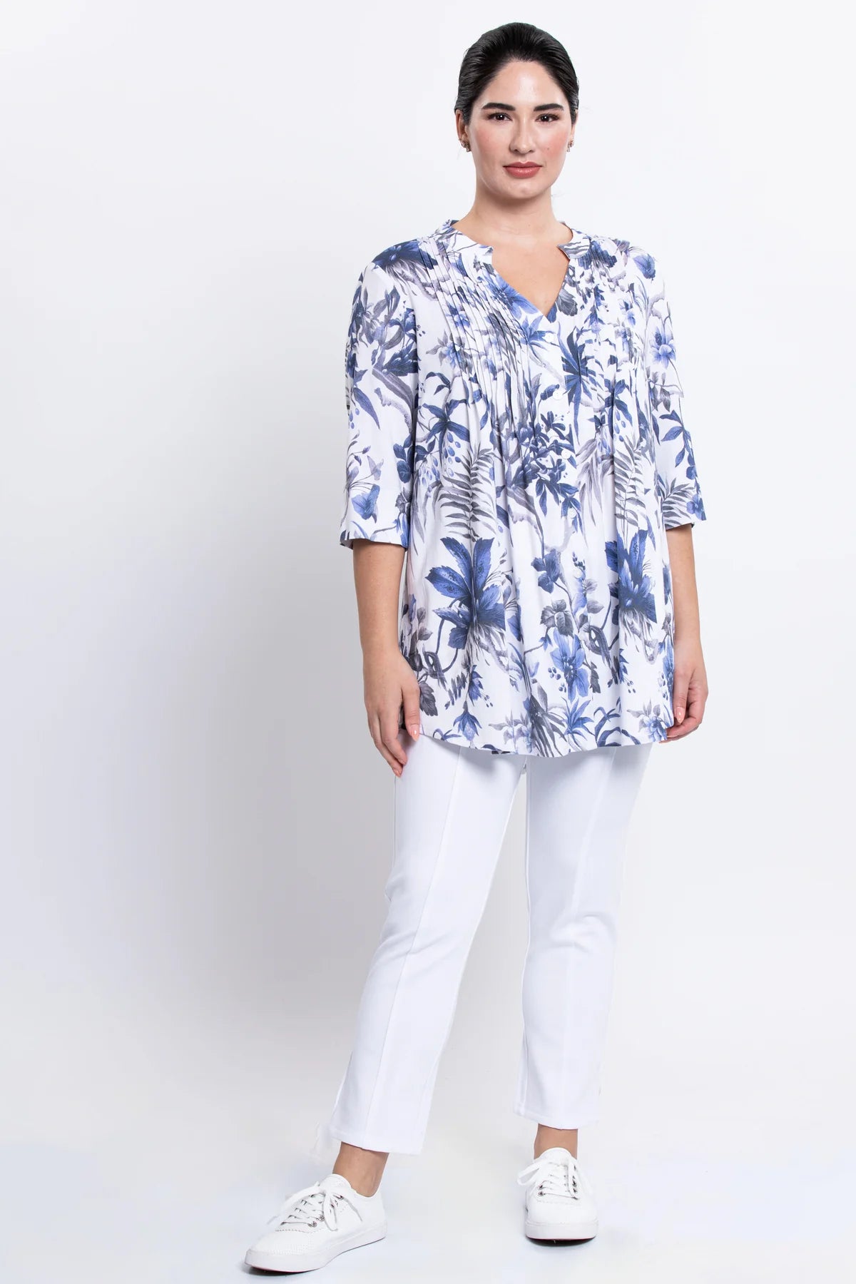 The Margate blouse features a unique mandarin inspired collar with pin tucks front and back which add a beautiful flow to this style. Side inseam pockets are a bonus!