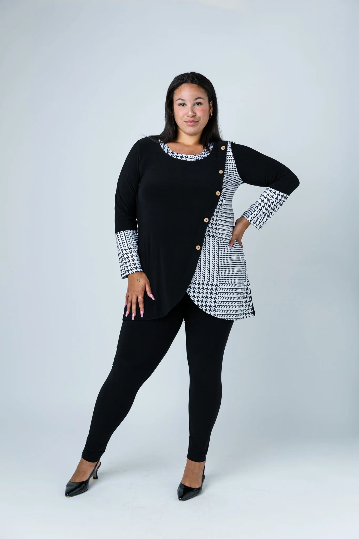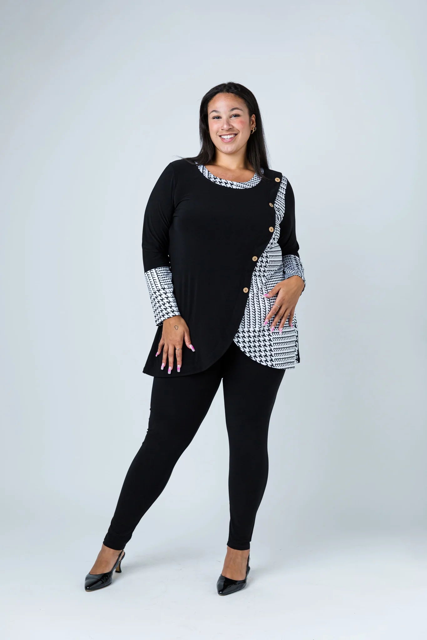 Black LABB Clothing | BL74-204 Houndstooth Combo Trim Neck Tunic
