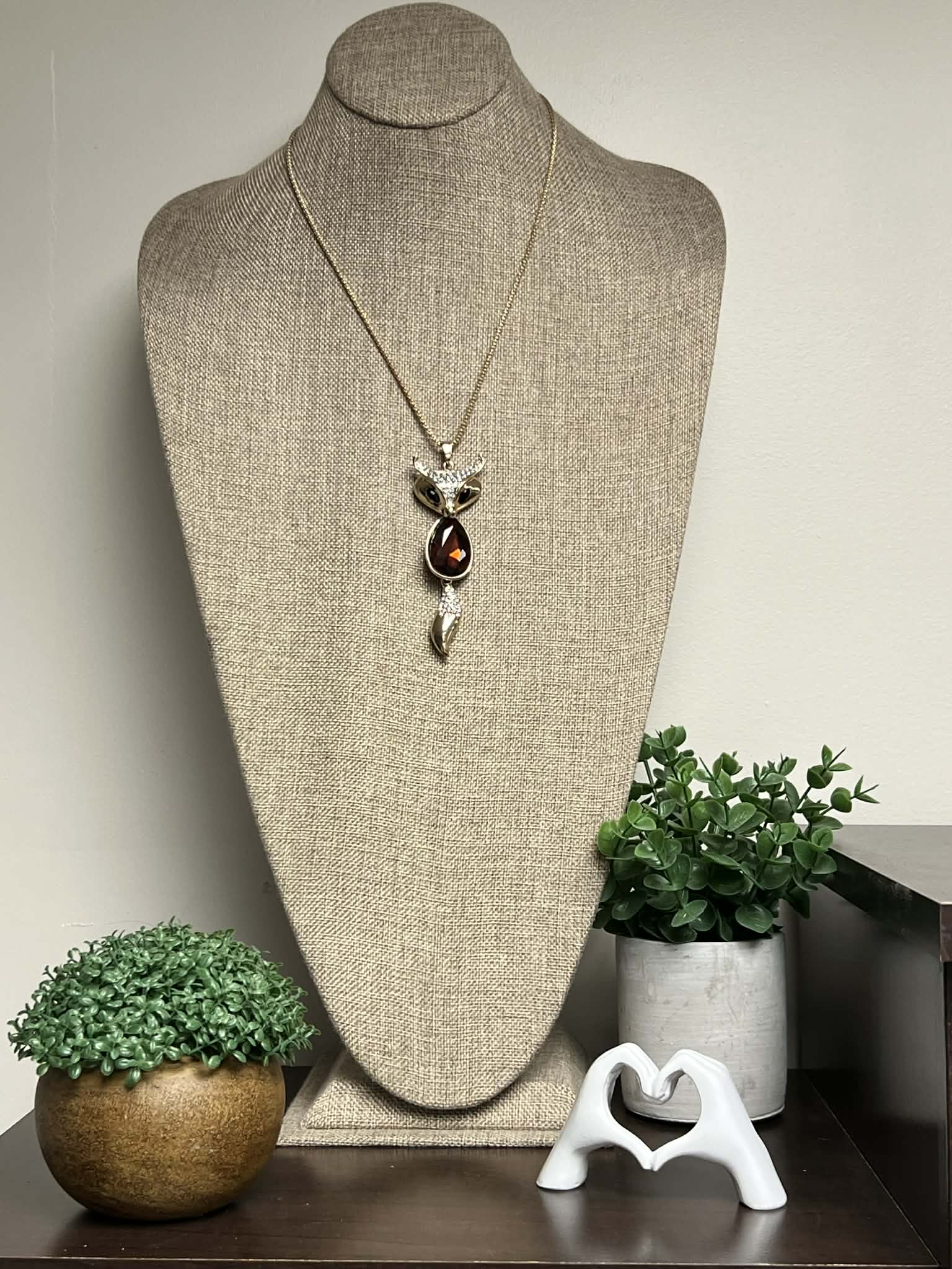Get clever with this cunning gold rhinestone fox necklace featuring a striking red gem accent. The adorable fox design sparkles with rhinestone details while the vibrant red stone adds a pop of color and personality. Perfect for animal lovers and those who appreciate a touch of whimsy, this playful piece proves that accessorizing with attitude has never looked so good!